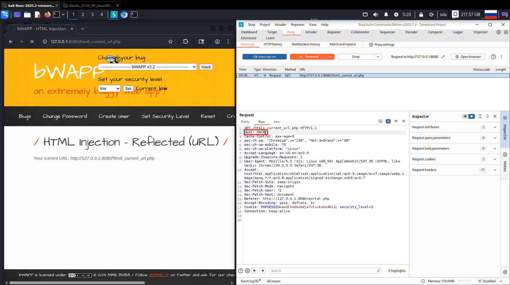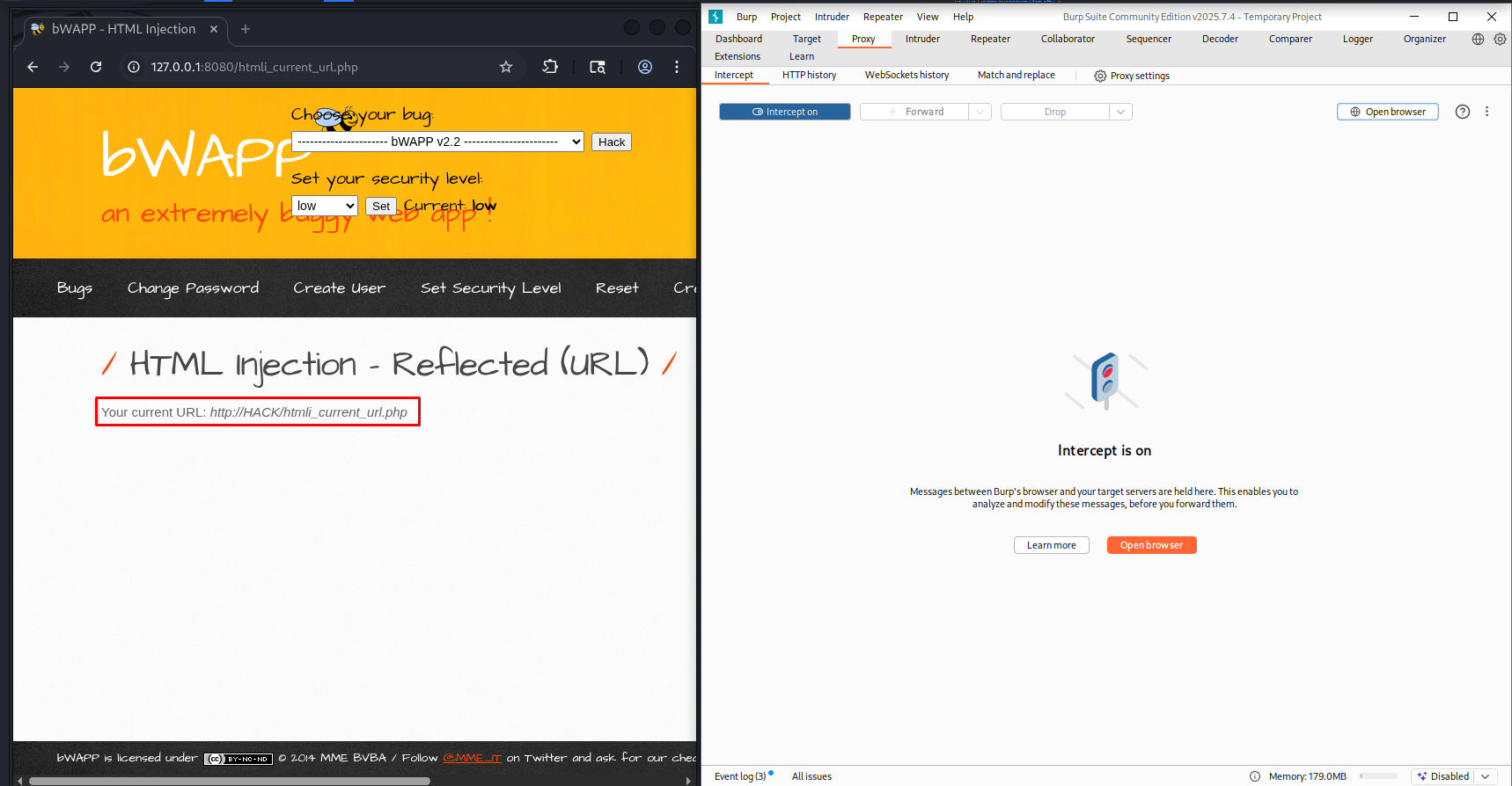 Уязвимость HTML Injection — Reflected (Current URL) уровень low