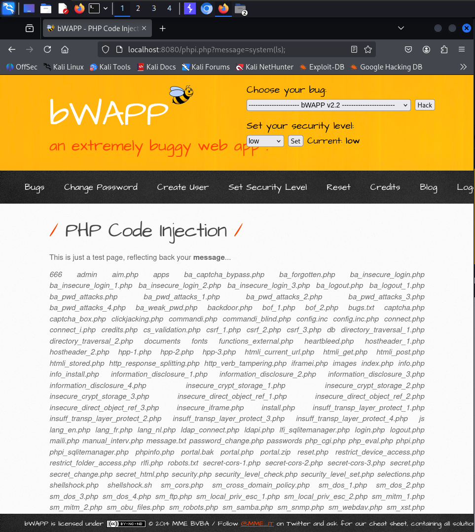 Нажимаем на message..., а потом в браузере вводим system(ls); (вместо ls можно ввести любую команду)
