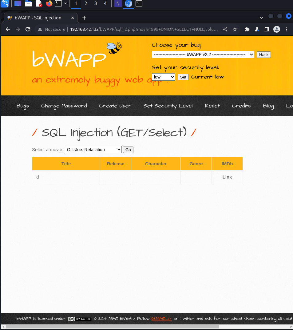 В приложении есть функция выбора, которая позволяет пользователю выбирать фильмы и просматривать информацию о них. Согласно перехвату Burp, приложение отправляет GET-запрос на файл sqli_2.php, который, в свою очередь, отображает данные из бд