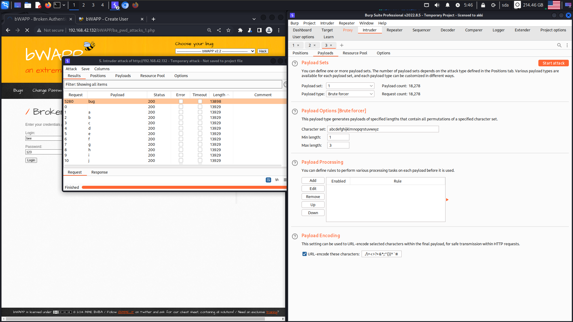 bWAPPA2 - Broken Auth&Session MgmtBroken Auth - Password AttacksBroken Auth. - Password Attacks Тут снайперим поля ввода пароля через бурп брутфорсом