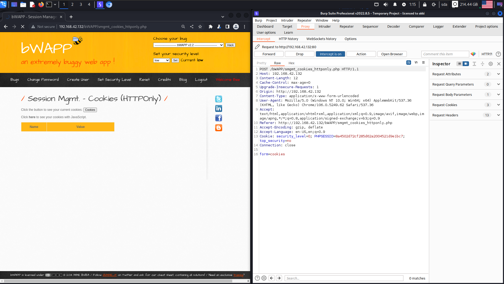 Потом входим в другой аккаунт другом браузер и перехватываем запрос и подменяем PHPSESSID