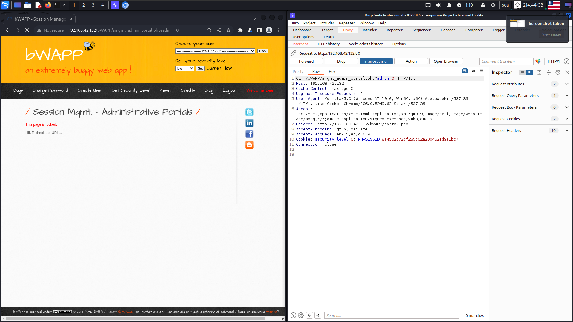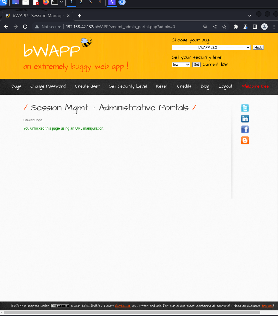 bWAPPA2 - Broken Auth&Session MgmtSession Mgmt - Administrative PortalsSession Mgmt. - Administrative Portals Меняем 0 на 1 в поле admin и спокойно входим