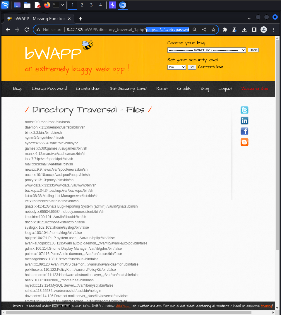 bWAPPA7 - Missing Functional Level Access ControlDirectory Traversal – FilesDirectory Traversal – Files